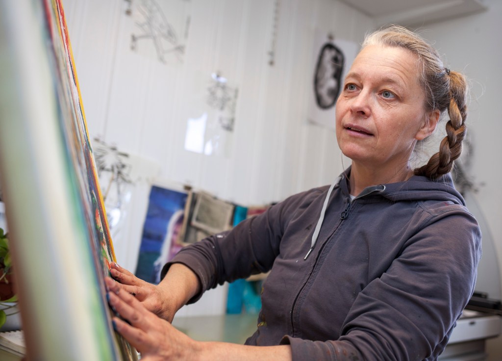Ateljén är min fristad. Ett eget rum, som Virginia Woolf skrev om för nästan 100 år sedan. En trygg plats för skapande där olika känslor, tankar och idéer kan utforskas utan att någon säger – du gör fel. Ateljén är en fredad plats skapad för experiment och lek.  /Annette